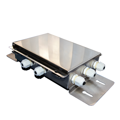 Соединительная коробка 8входов, 1 выход. Нержавеющая сталь, резиновый уплотнитель крышки, пластиковые гермовводы. IP67. Клеммные винтовые колодки, подстроечные резисторы