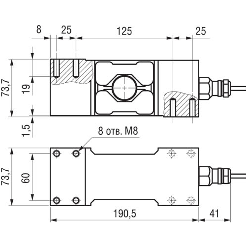 Тензодатчики типа «Single Point» из нержавеющей стали. На одном таком тензодатчике можно собрать весы размером от 350x350мм до 1000x1000мм в зависимости от типоразмера. И хотя стоимость этих тензодатчиков достаточно высокая, но она ниже, чем стоимость четырех балочных тензодатчиков. Тем более, что узлов встройки для Т50 не требуется. Тензодатчик Т50 прикручивается непосредственно к раме основания и платформе.